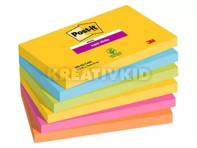 Öntapadó jegyzettömb, 76x127 mm, 6x90 lap, 3M POSTIT, "Super Sticky", Carnival