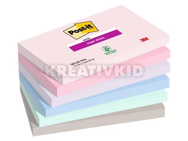 Öntapadó jegyzettömb, 76x127 mm, 6x90 lap, 3M POSTIT "Super Sticky Soulful", vegyes színek