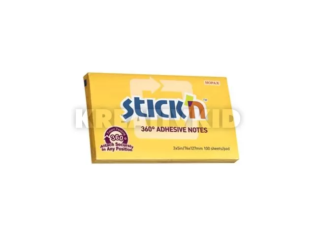 Öntapadó jegyzettömb, 76x127 mm, 100 lap, STICK N, sárga