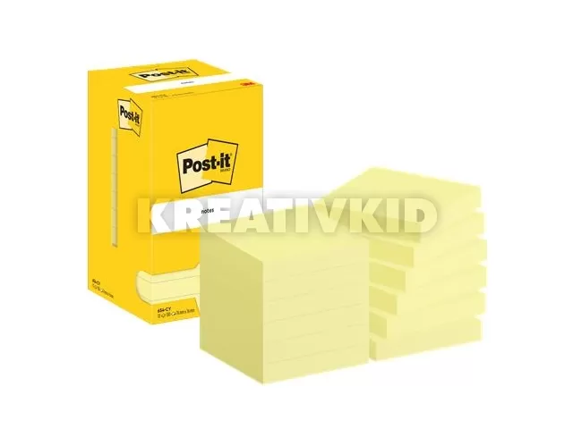 Öntapadó jegyzettömb, 76x76 mm, 12x100 lap, 3M POSTIT, kanári sárga