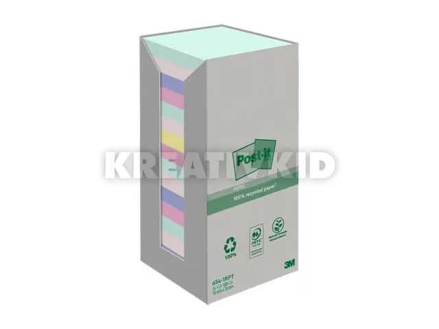 Öntapadó jegyzettömb, 76x76 mm, 16x100 lap, környezetbarát, 3M POSTIT "Nature", vegyes pasztell színek
