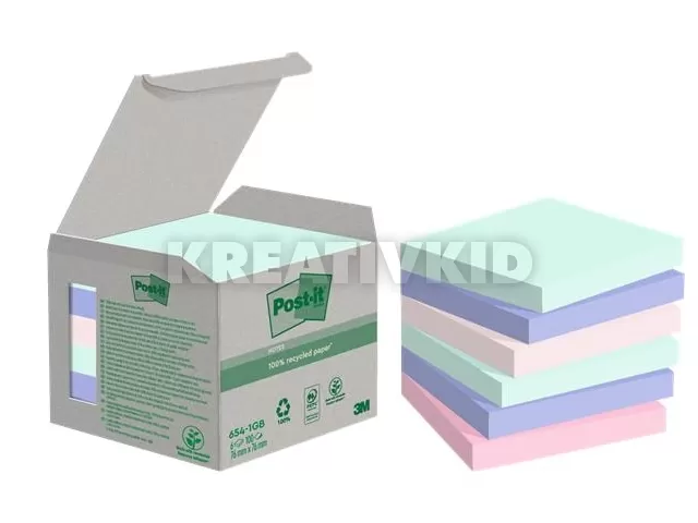 Öntapadó jegyzettömb, 76x76 mm, 6x100 lap, környezetbarát, 3M POSTIT "Nature", vegyes pasztell színek