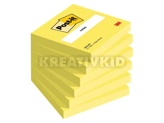 Öntapadó jegyzettömb, 76x76 mm, 6x100 lap, 3M POSTIT, neonsárga