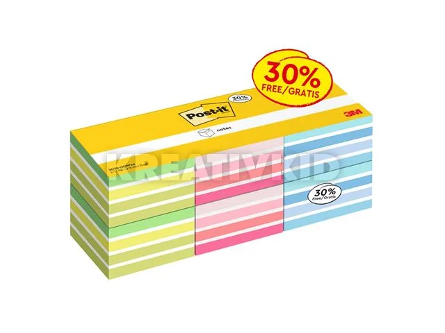 Öntapadó jegyzettömb, 76x76 mm, 6x450 lap, 3M POSTIT, vegyes színek