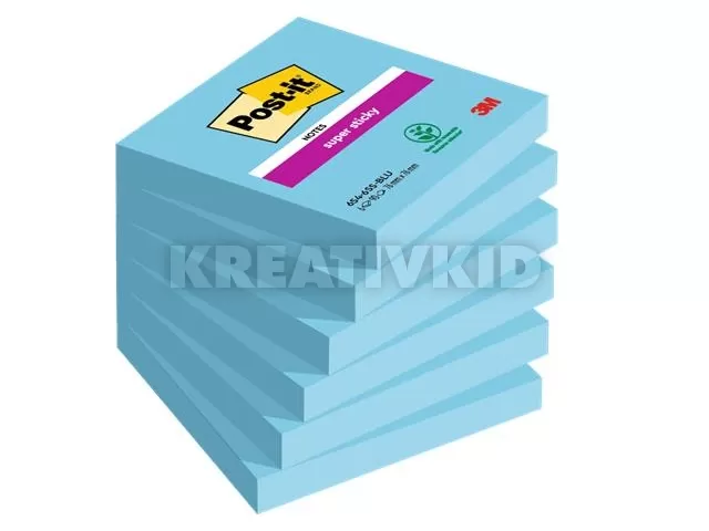Öntapadó jegyzettömb, 76x76 mm, 6x90 lap, 3M POSTIT "Super Sticky", kék