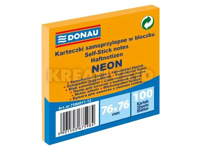 Öntapadó jegyzettömb, 76x76 mm, 100 lap, DONAU, neon narancssárga