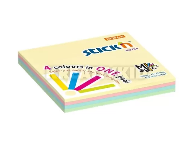 Öntapadó jegyzettömb, 76x76 mm, 100 lap, STICK N "Magic Pad" pasztell színek
