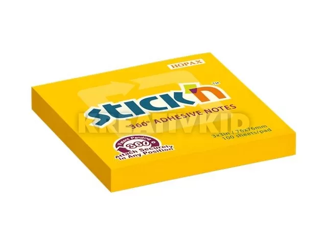 Öntapadó jegyzettömb, 76x76 mm, 100 lap, STICK N, narancs