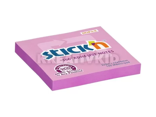Öntapadó jegyzettömb, 76x76 mm, 100 lap, STICK N, rózsaszín