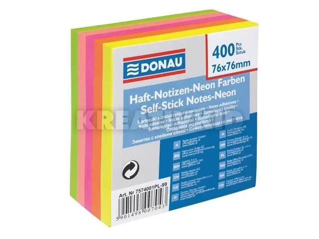 Öntapadó jegyzettömb, 76x76mm, 400lap, DONAU, vegyes neon színek