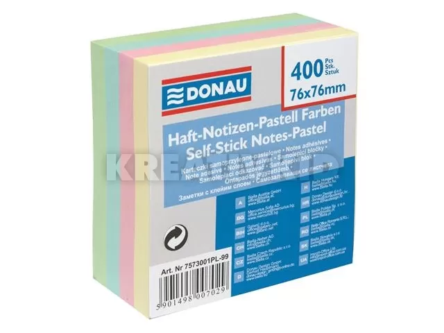 Öntapadó jegyzettömb, 76x76mm, 400 lap, DONAU, pasztell színek