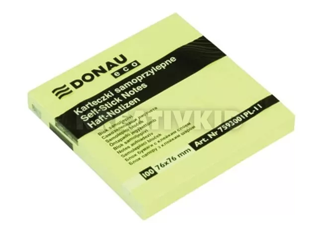 Öntapadó jegyzettömb, 76x76mm, 100 lap, DONAU "ECO", sárga