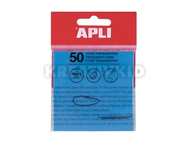 Öntapadó jegyzettömb, átlátszó, vízálló, 75x75 mm, 50 lap, APLI, kék