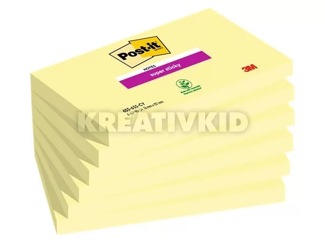 Öntapadó jegyzettömb csomag, 76x127 mm, 6x90 lap, 3M POSTIT "Super Sticky", kanári sárga