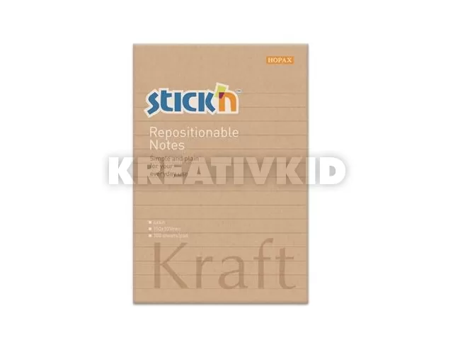 Öntapadó jegyzettömb, vonalas, 150x101 mm, 100 lap, STICK N "Kraft Notes