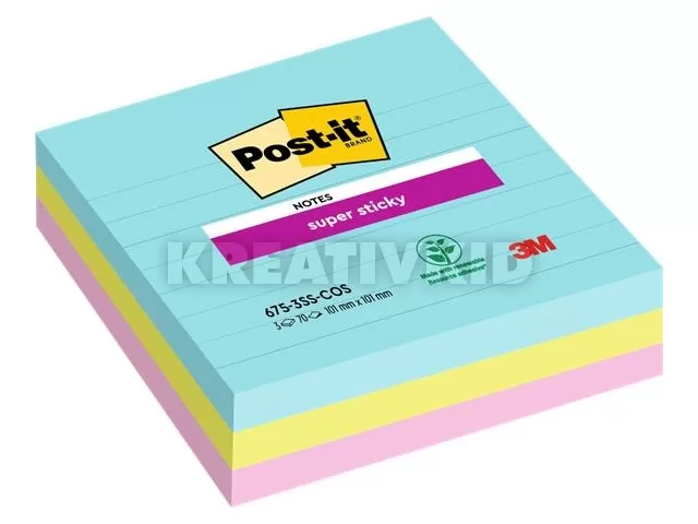 Öntapadó jegyzettömb, vonalas, 3x70 lap, 101x101 mm, 3M POSTIT "Super Sticky Cosmic", vegyes színek