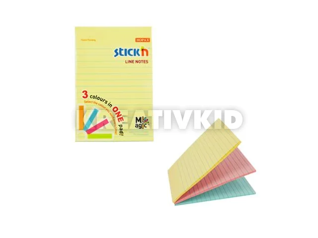 Öntapadó jegyzettömb, vonalas, 50x101 mm, 3x90 lap, STICK N "Magic Pad", pasztell színek