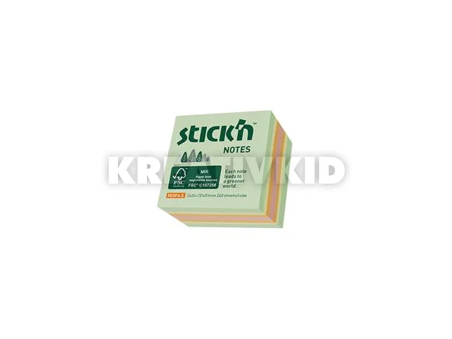 Öntapadó kockatömb, 51x51mm, 240 lap, STICK N, erdő színei pasztell mix