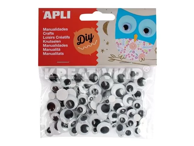 Öntapadó mozgó szem, kör, APLI "Creative", fekete-fehér