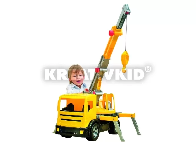 torony 270 fokban forgatható. A daru gémje teleszkópikusan kihúzható, a kellő hosszúságban rögzíthető. Maximális hosszúság: 105 cm. A darusautó hossza: 62 cm.