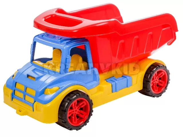 Szállíts nehéz rakományokat a nagy dömper platóján! Az Óriás műanyag dömper egy masszív, fém tengelyekkel felszerelt nagyméretű teherautó. A dömper platóját fel tudod emelni, hogy könnyebben kirakodhass, az autóval homokot, kavicsokat vagy kedvenc játékodat is fuvarozhatod! Az Óriás műanyag dömper a homokozóban is megállja a helyét! Méretek: 50 x 25 x 27 cm.