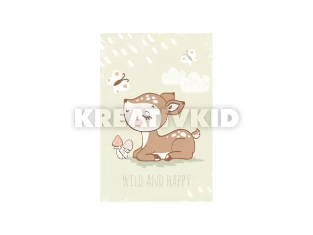 Őzike mintájú polár takaró Wild and Happy felirattal - 100 x 150 cm
