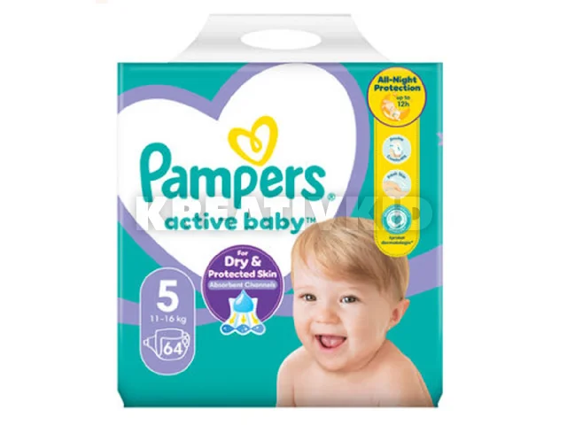 Alvás közben a kisbabák akár kétszer annyit is mocoroghatnak, mint a felnõttek, ezért pelenkájuk szivároghat. A Pampers Active Baby Dry pelenka teljes körû védelmet nyújt a szivárgás ellen éjjel-nappal, különleges háromszoros védelmi rendszerének köszönhetõen, amely azonnal felszívja a nedvességet és segít megakadályozni a szivárgást a deréknál és a comboknál.