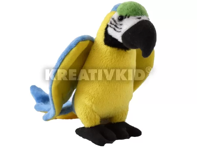 Kedves egzotikus madár, puha plüssből! A kék-sárga Papagáj plüssfigura egy selymes plüssel borított, szivaccsal töltött élethű madár, csillogó szemekkel. A papagáj fekete csőrrel és lábakkal, zöld fejjel készült, a papagájt bárhova le tudod ültetni, de játszhatsz is vele. A kék-sárga Papagáj plüssfigura mérete: 15 cm.