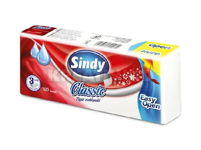 Papír zsebkendő, 3 rétegű, 100 db, "Sindy", classic