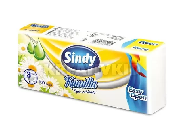 Papír zsebkendő, 3 rétegű, 100 db, "Sindy", kamilla