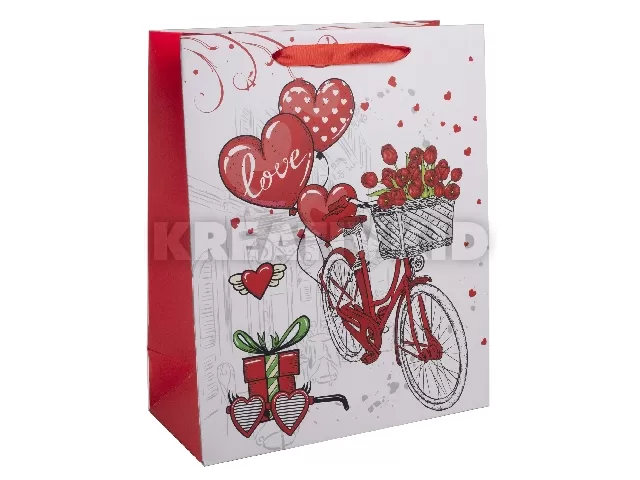 Az ajándék már megvan, de nem találod a tökéletes csomagolást? Ne keress tovább! Ebbe a bicikli + rózsa + szív mintás papírtasakba bátran csomagolhatod az ajándékod. Kedves és aranyos kinézetének köszönhetően bármilyen ajándék méltó csomagolása lehet.
