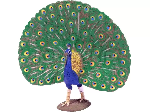 Kék színű madár, hatalmas farktollakkal! A Papo páva 51161 egy műanyagból készült, kézzel festett madár figura, sárga csőrrel. A páva hatalmas farktollait ki tudja nyitni, így ijeszti el a fenyegetéseket. A páva együtt használható más Papo madarakkal, készletekkel is. A Papo páva 51161 méretei: 13 x 6 x 12 cm.