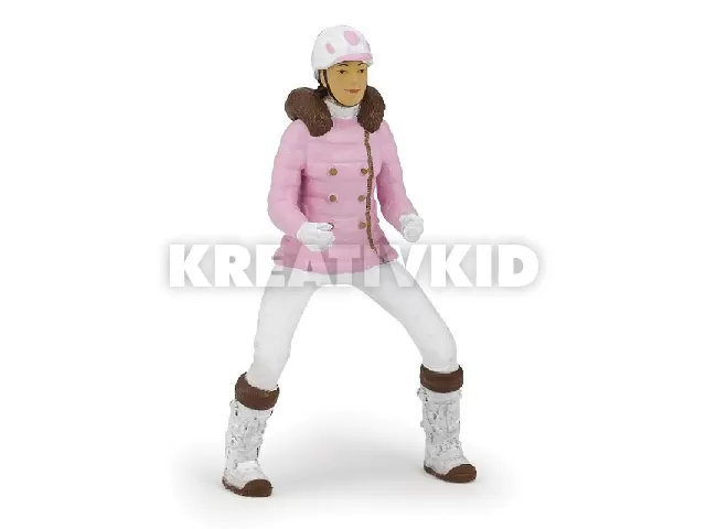 Nem csak nyáron, hanem hóesésben is lehet lovagolni! A Papo téli lovagló lány 52011 egy rózsaszín téli kabátba, fehér nadrágba és lovagló sapkába öltöztetett lányfigura. A figura műanyagból készült, kézzel van festve, és bármelyik Papo pónira és lóra könnyedén fel tudod ültetni. A Papo téli lovagló lány 52011 együtt használható bármelyik Papo farm játékkal, készlettel is. Méretek: 3 x 5 x 9 cm.