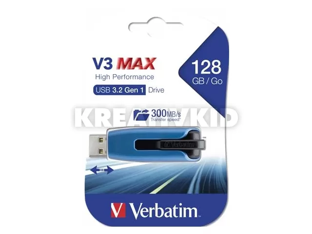 Pendrive, 128GB, USB 3.2, 175/80 MB/s, VERBATIM "V3 MAX", kék-fekete