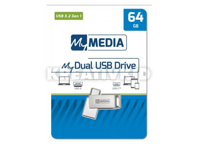Pendrive, 64GB, USB 3.2 Gen1 + USB-C, alumínium ház, MYMEDIA "Dual" (by VERBATIM)