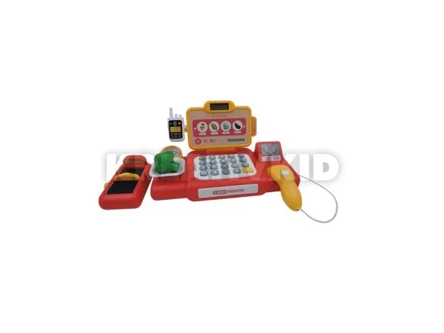Tartalom: 1 db pénztárgép számológéppel és kártyanyílással, a következő kiegészítőkkel: 1 doboz keksz, 1 doboz sütemény, tisztítószer, ketchup, olíva olaj, tej, bors, bankkártya, 1 doboz pizza, 1 doboz sushi, répa, zöldségek (répa, brokkoli, kukorica, padlizsán), 1 db tojás, 8 db papírpénz, 1 szett aprópénz (12 db), 1 db adóvevő. Elemszükséglet: 3 X AA (nem tartozék).