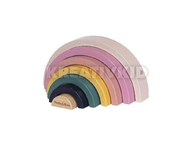 - A szivárvány 7 különböző méretű félkörből áll, lehetőséget adva a gyerekeknek, hogy összekapcsolják és egymásra rakják őket