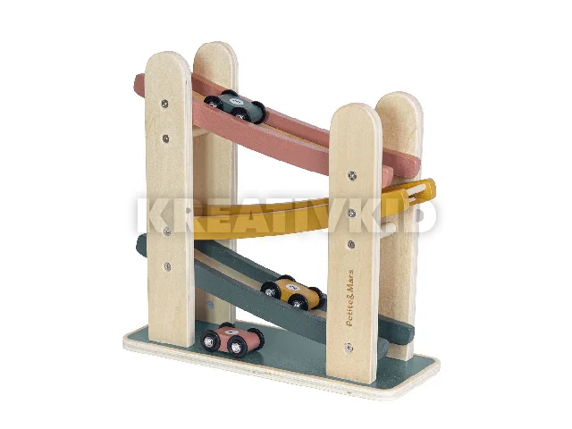 - A készlet 3 szintből és 3 kisautóból áll, amelyek fentről lefelé haladva biztosítanak látványos szórakozás