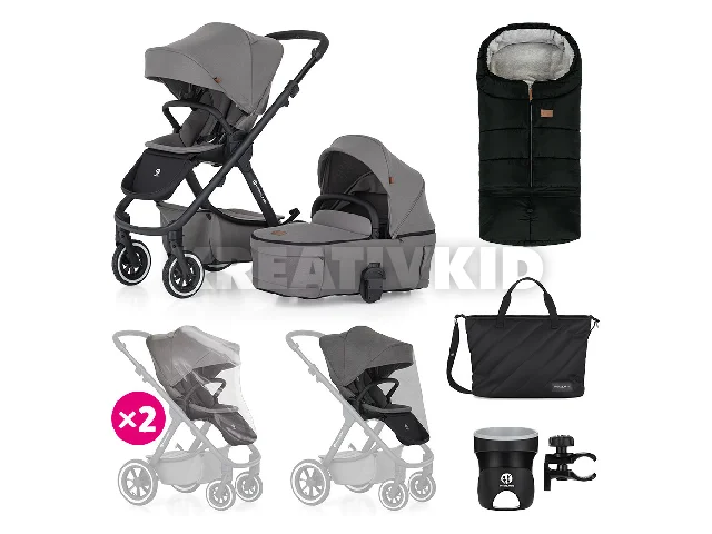 • A készlet tartalmazza: babakocsi váz, 2 x első és 2 x hátsó felfújható gumikerék, mózeskosár takaróval, sportülés, alsókosár, Maxi-Cosi adapterek, Pelenkázótáska Mia Just Black, Jibot 3in1 Ink Black bundazsák, Italtartó Handy, Rovarháló Mesh, Esővédő mély babakocsira, Esővédő sport babakocsira