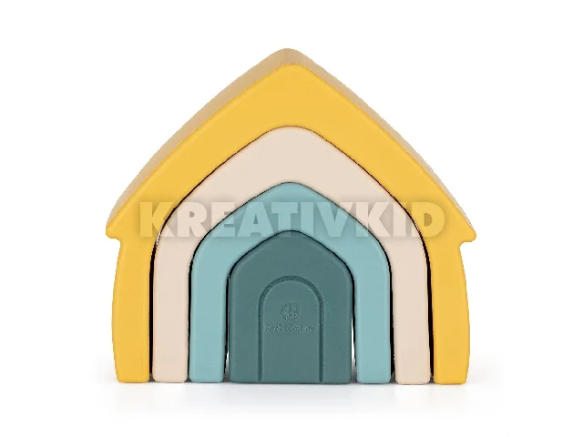 Ez a ház egy varázslatos kapu a formák, színek és felfedezések világába. Az ívek összerakása, megfordítása vagy egyik ívnek a másikra helyezése nagyszerű gyakorlat kisbabád kezeinek. A legmagasabb minőségű, tartós anyagok, a részletekre való odafigyelés és a gondosan kiválasztott ívméretek lehetővé teszik csemetéd számára a biztonságos játékot és a fejlődés ösztönzését.