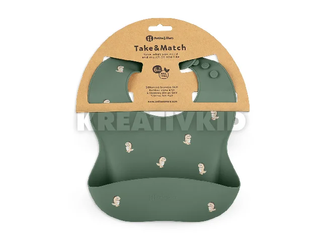 Petite&Mars Szilikon előke, Take&Match, 6 hó+, Green Dinos