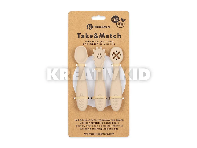 Petite&Mars Szilikon gyakorló kanál szett, 3 db, Take&Match, Desert Sand, 6 hó+