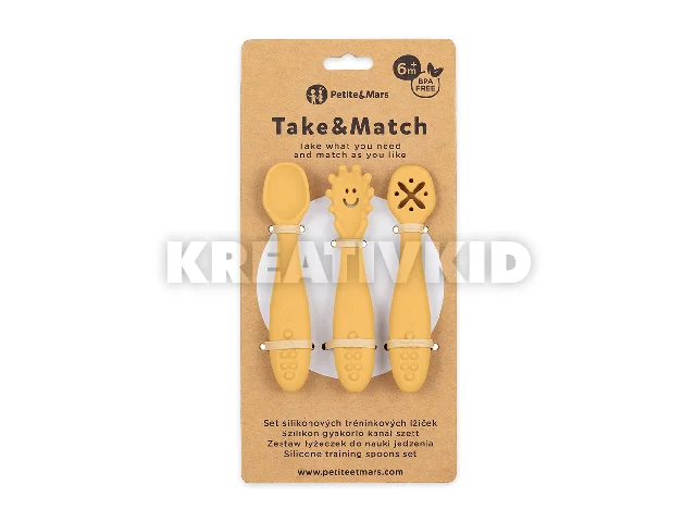 Petite&Mars Szilikon gyakorló kanál szett, 3 db, Take&Match, Intense Ochre, 6 hó+