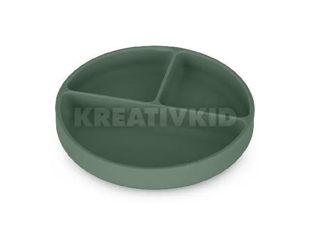 Petite&Mars Szilikon osztott kerek tányér, Take&Match, Misty Green, 6 hó+