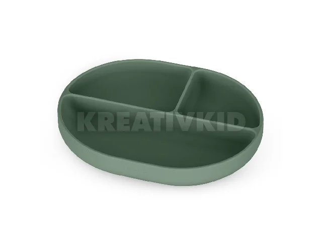 Petite&Mars Szilikon osztott ovális tányér, Take&Match, Misty Green, 6 hó+