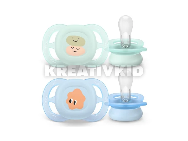 Az újszülötteknek való cuminkat kifejezetten úgy terveztük, hogy illeszkedjen a pici szájukhoz és arcukhoz. Pillekönnyû, gyûrû nélküli kialakítása miatt ideális elsõ cumi, amelyet a babák egészen 6 hónapos korukig használhatnak. A cumi alakja és mérete segíti a babákat abban, hogy könnyedén át tudjanak állni a Philips Avent ultra air és ultra soft cumikra, így kielégítve a természetes szopási szükségleteiket.