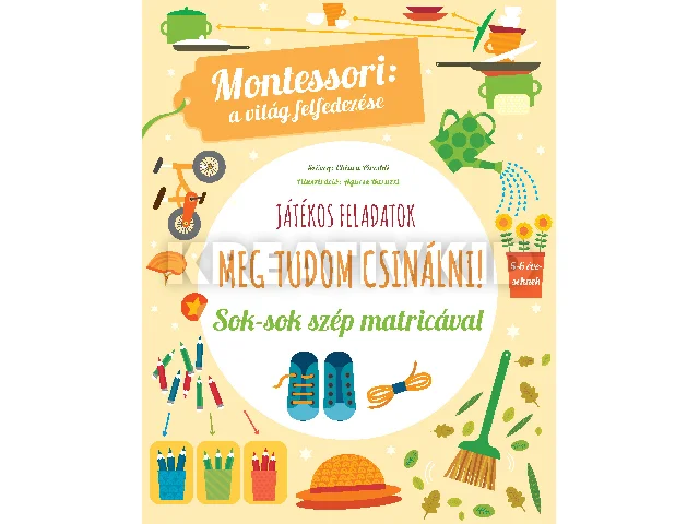 Labirintusokat, rajzos-írásos feladatokat és sok-sok matricát találunk a könyv lapjain, amit Maria Montessori híres monA Montessori-pedagógia elveit követve ajánl a könyv kreatív játékokat és feladatokat, amelyek kifejezetten a gyermekek kognitív képességeinek fejlesztését szolgálják.dása ihletett: Segíts, hogy magam csináljam! Tanítsuk meg a gyerekeket az önmagukról, másokról, valamint a környezetükről való gondoskodásra, mindezt magukkal ragadó és szórakoztató feladatok segítségével!