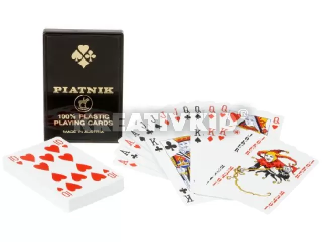 Játsszatok izgalmas kártyajátékokat műanyag lapokkal! A Piatnik plasztik 55 lapos römi kártya igényesen készült élénk színű, egy pakli műanyag kártyalapot tartalmaz, piros vagy kék hátlappal. A kártyákkal bármilyen egy paklis játékot lehet játszani, a műanyag lapok tartósak, hosszú ideig szolgálják gazdájukat. A Piatnik plasztik 55 lapos römi kártya lapjainak méretei: 6 x 9 cm. A játékok külön kaphatóak. A megjegyzésben kérjük tüntesd fel, hogy melyik változatot szeretnéd!