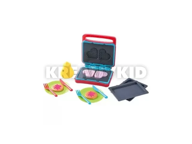 A 16 db-os készlet tartalmaz egy szíves gofrisütőt hanggal és világítással, cserélhető belső résszel, két tányért késsel és villával, két szív alakú és két kör alakú műanyag sütit valamint egy szirupos palackot. A sütik felülete hideg víz hatására változtatja a színét.