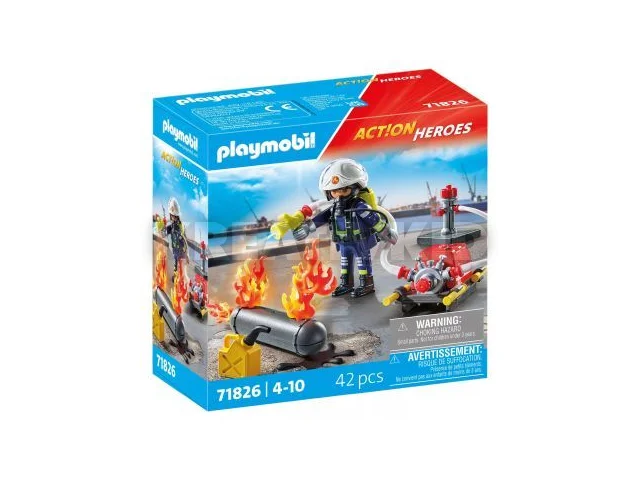 - Tartalmaz egy tűzoltó figurát és egy vízágyút